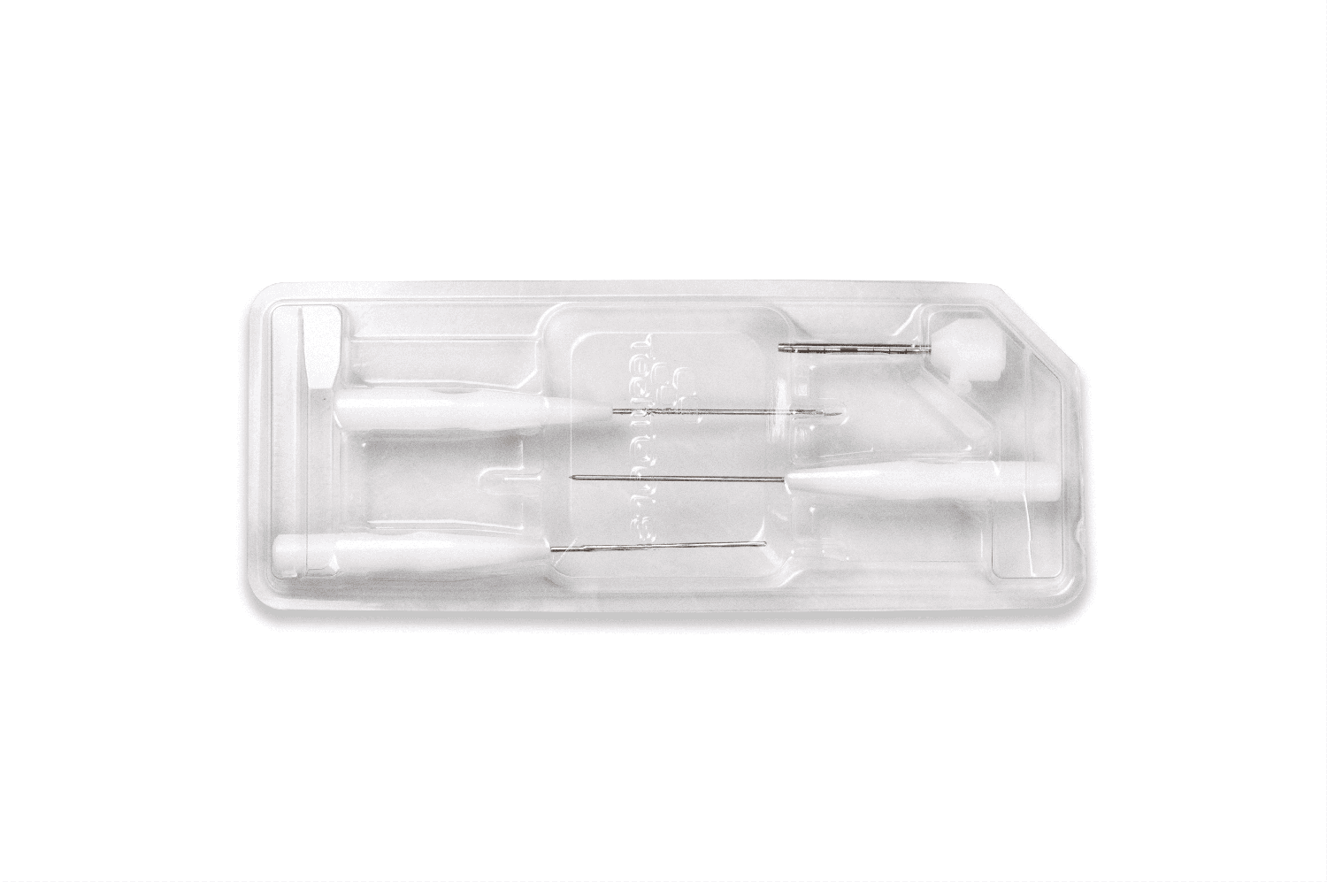 - Composição: 1 Ponta Agulha Faca Banana; 1 Ponta Agulha Perfurante; 1 Ponta Agulha Romba; 1 Cânula Guia 1 Entrada
